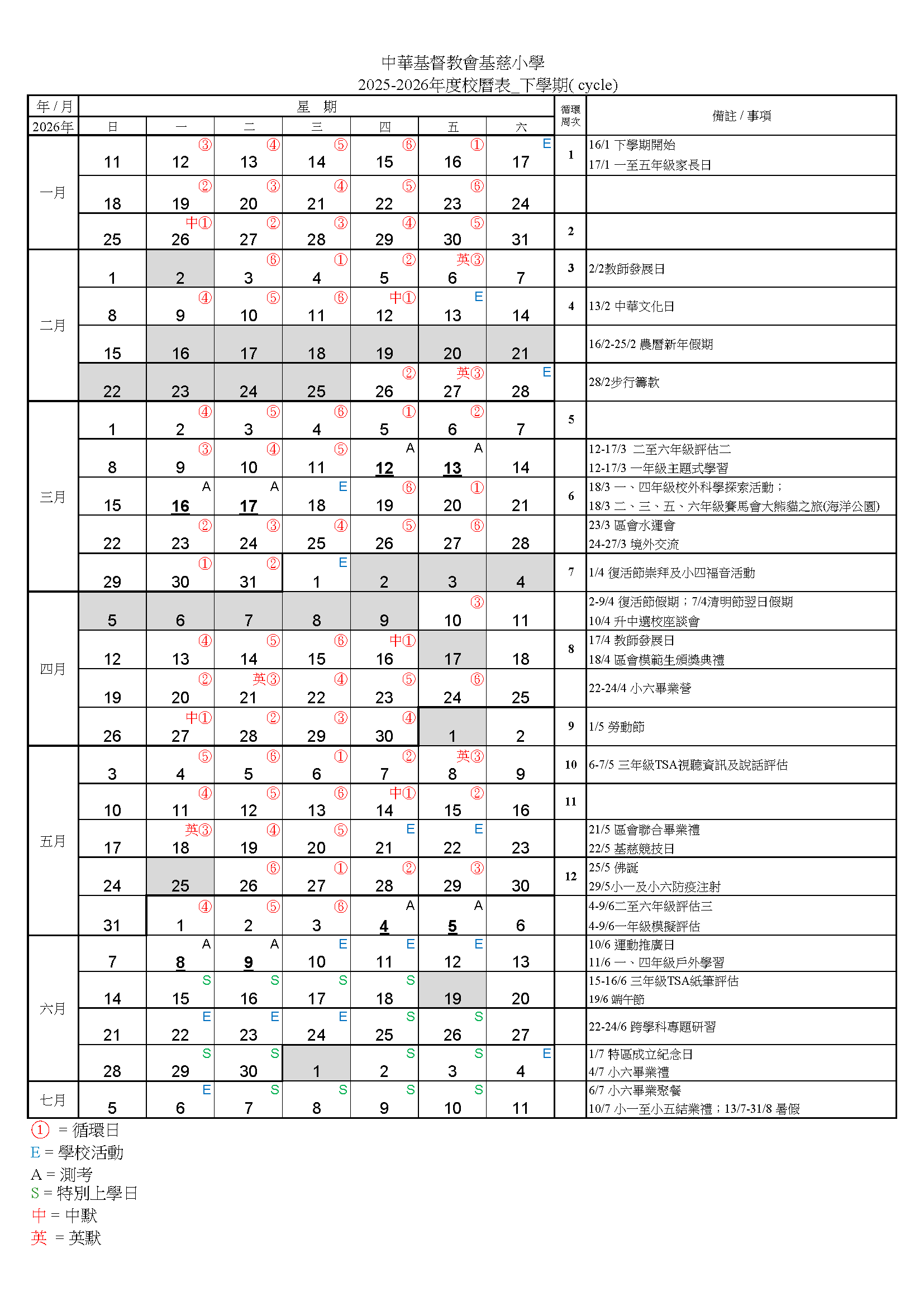 2025/26年度校曆表