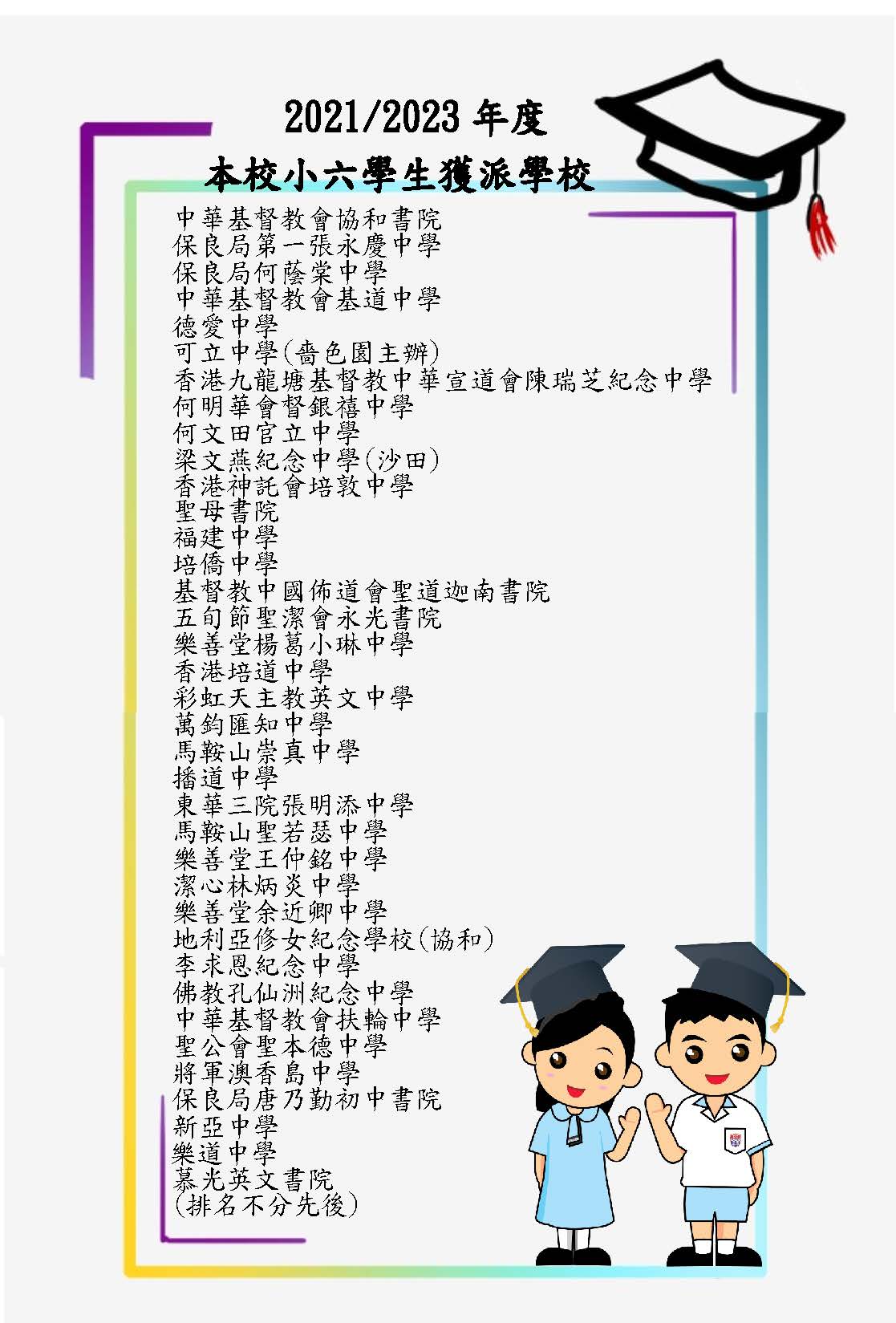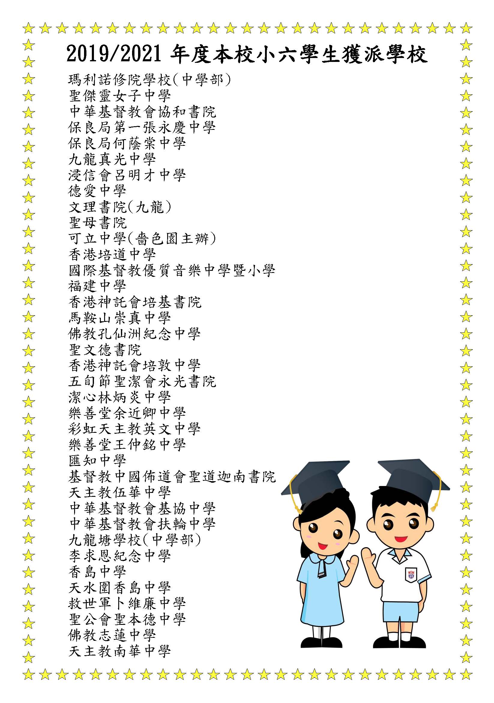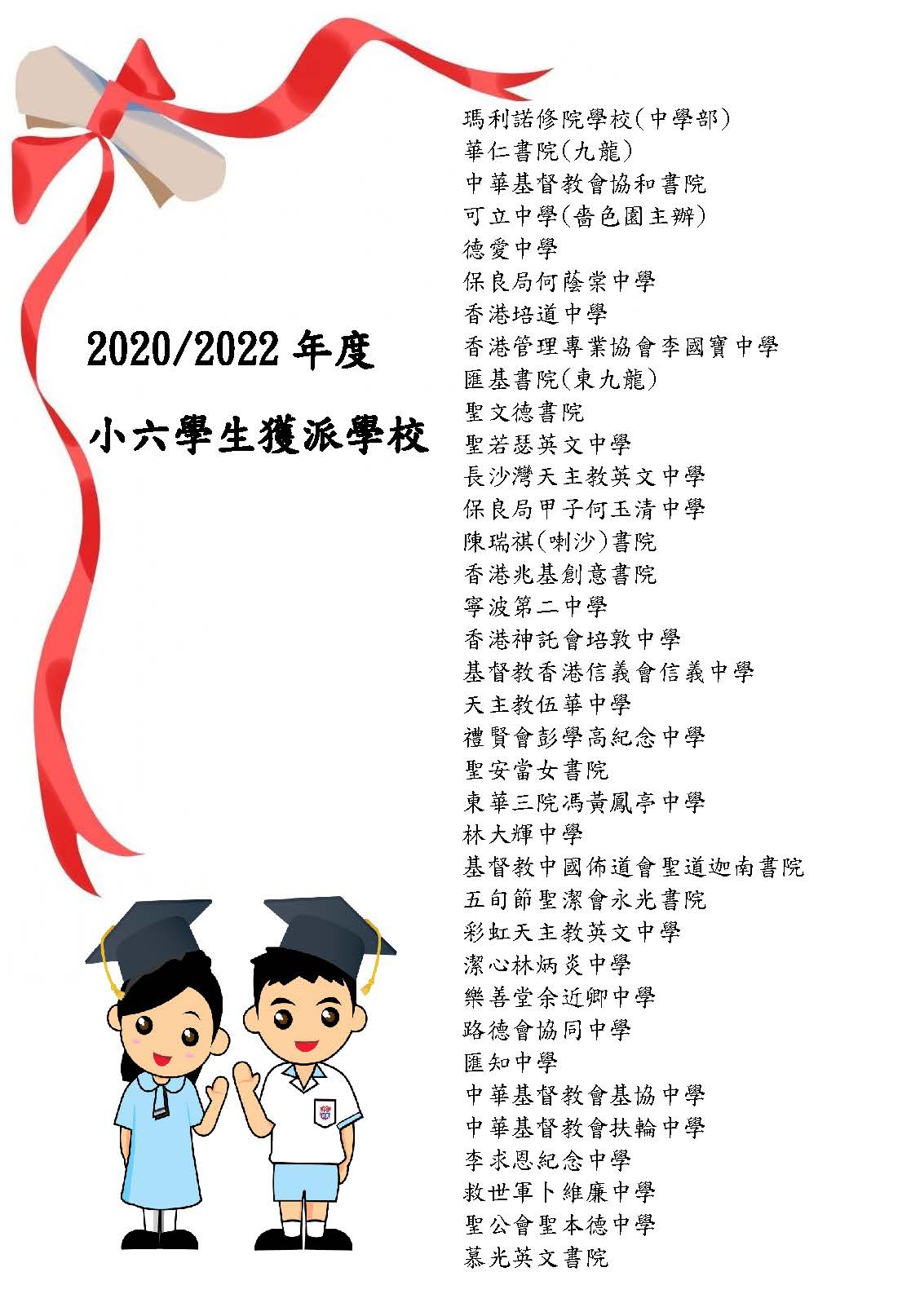 近年本校小六學生獲派跨區學校